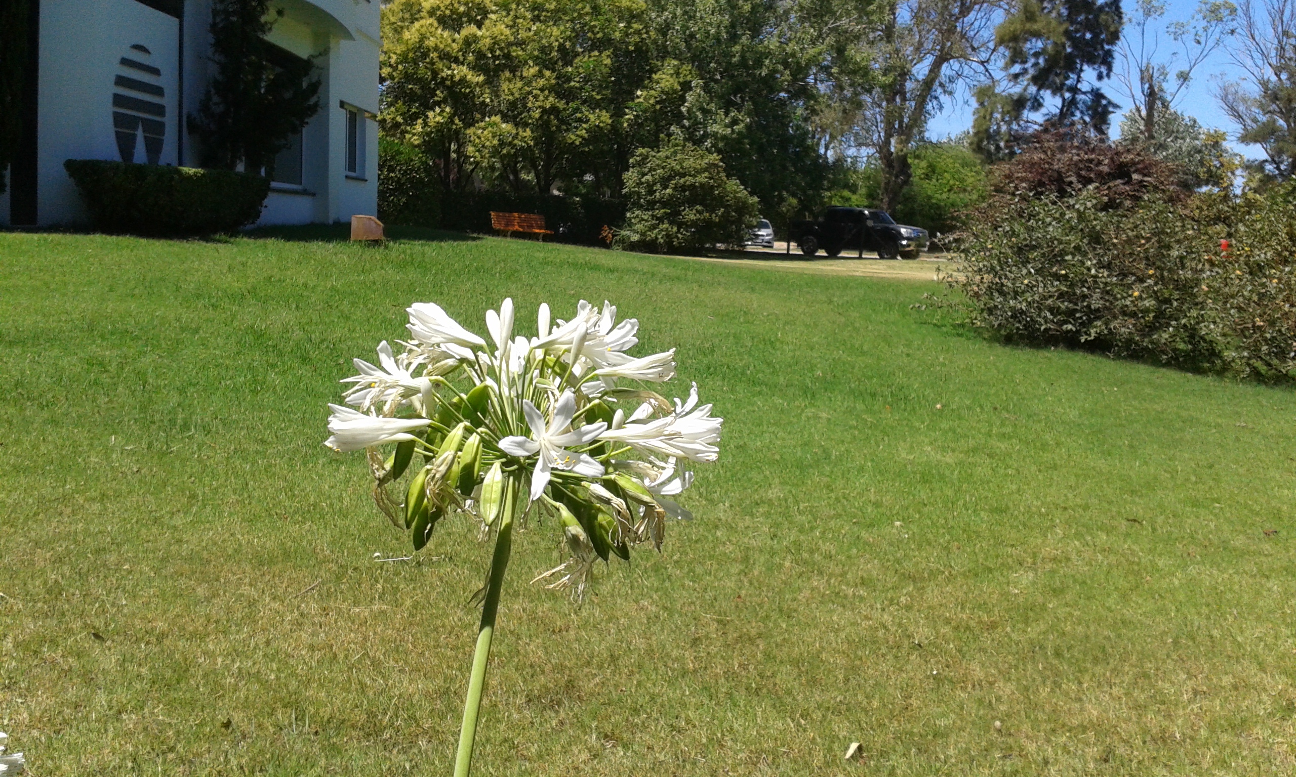 desde nuestra ventana son los agapantus que nos acompañan. Las abelias y los