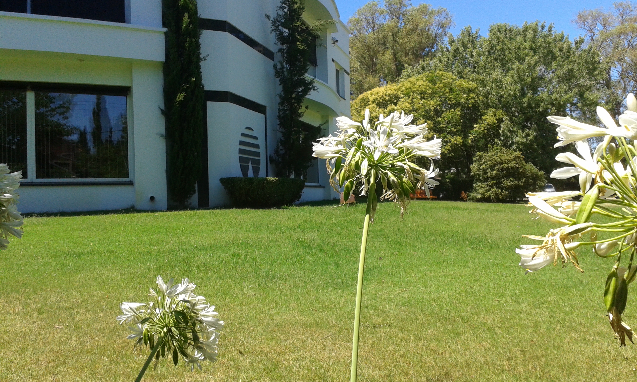 desde nuestra ventana son los agapantus que nos acompañan. Las abelias y los